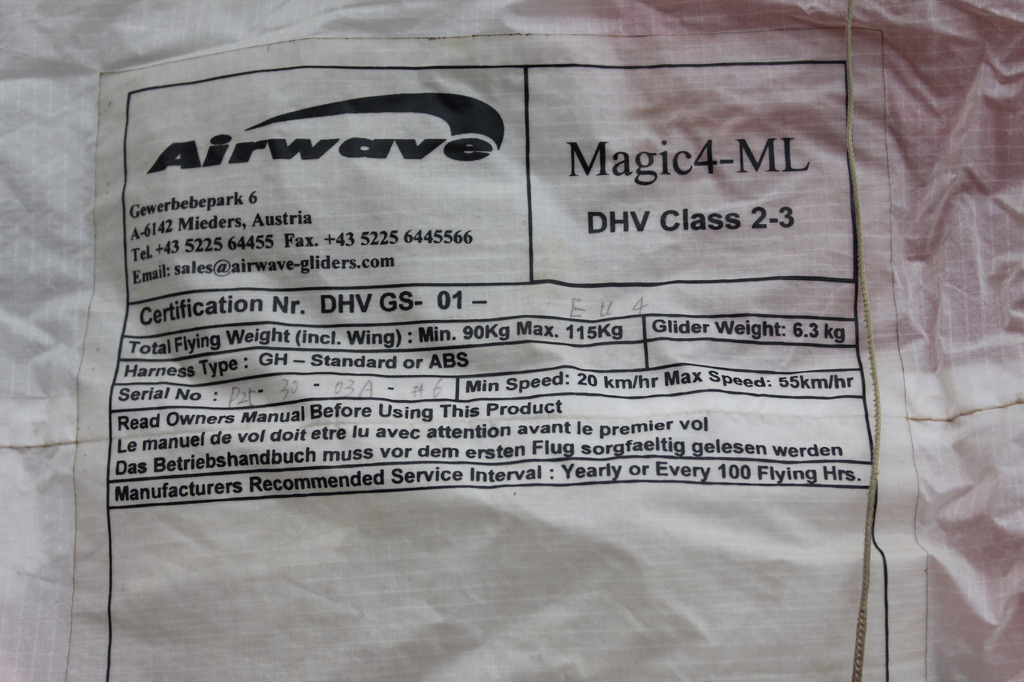 ?Airwave? Magic4? DHV 2~3?? 90kg~115kg?가격:140만원?---수리한 곳 없으며 상태 양호합니다.? 현재 비행중인 기체입니다.